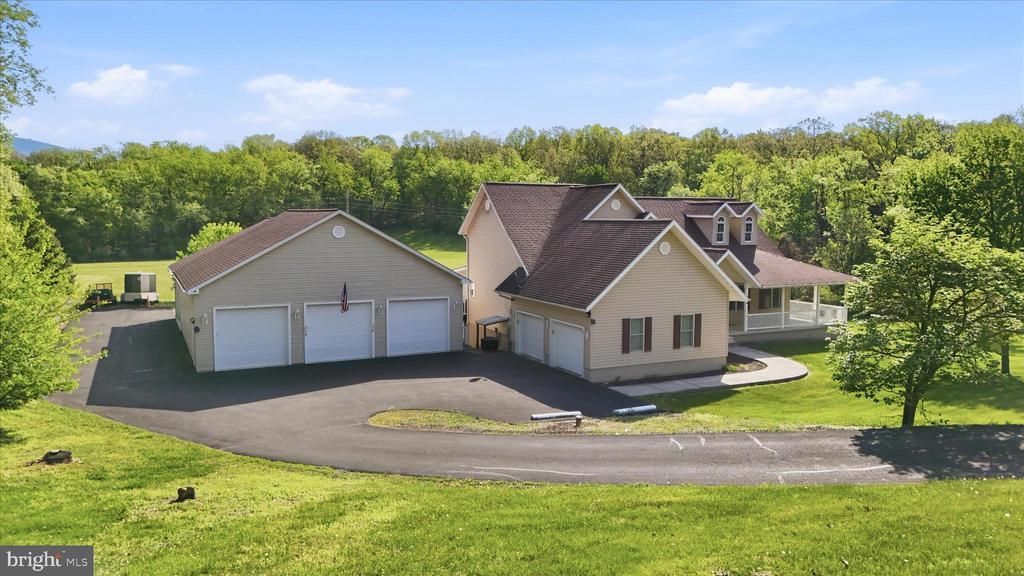 The Ultimate Haven for Car Enthusiasts! 🚗💨 Rare opportunity to own a stunning contemporary estate featuring a staggering 15-car total garage capacity. This property includes a 2-car attached garage PLUS a massive 9-car detached garage with an additional 4-car garage attached to it—perfect for collectors, workshops, or extensive storage. Inside, the home offers effortless main-level living with a primary suite, a private den/office, a soaring living room with vaulted ceilings and a cozy fireplace and a formal dining room. The upper level features two spacious bedrooms with a convenient Jack-and-Jill bath, while the massive walk-out lower level includes a huge family room and a full bath. Relax on the walk-out deck or utilize the expansive unfinished basement space for even more storage. A truly one-of-a-kind property!