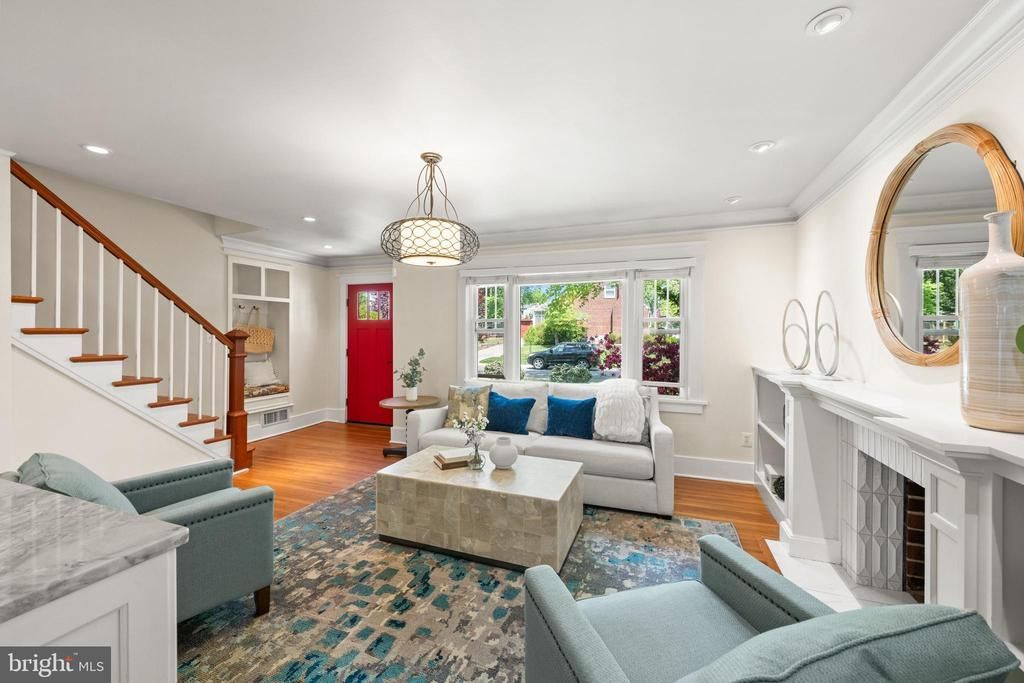 Offering 5 bedrooms and 3 full baths in the sought-after neighborhood of Wyngate, this award-winning renovation was recognized by ASID as “Best Interior Architecture Under 3,000 Square Feet” and featured in Cottage Journal. The home showcases a contemporary, open floor plan with thoughtful design and high-end finishes throughout. The main level is filled with natural light and features a welcoming living room with wood-burning fireplace, custom built-ins, and hardwood floors. The standout kitchen is a chef’s dream with dual-fuel cooking, quartzite countertops, farm sink, custom cabinetry, breakfast bar, and table space. A seamless addition expands the living area with skylights, abundant windows, and a convenient side entrance leading to an oversized deck with stairs to the backyard. Two bedrooms and a beautifully renovated full bath complete this level, offering ideal flexibility for guests or main-level living. Upstairs, you’ll find two spacious bedrooms, including one with a walk-in closet, along with a well-appointed full bath. The walk-out lower level provides additional living space featuring a sitting area and fireplace, bedroom area with closet, window and a third full bath, laundry, and ample storage. Outside, enjoy a professionally landscaped grounds with fenced rear and side yards, creating a private and inviting outdoor setting.
